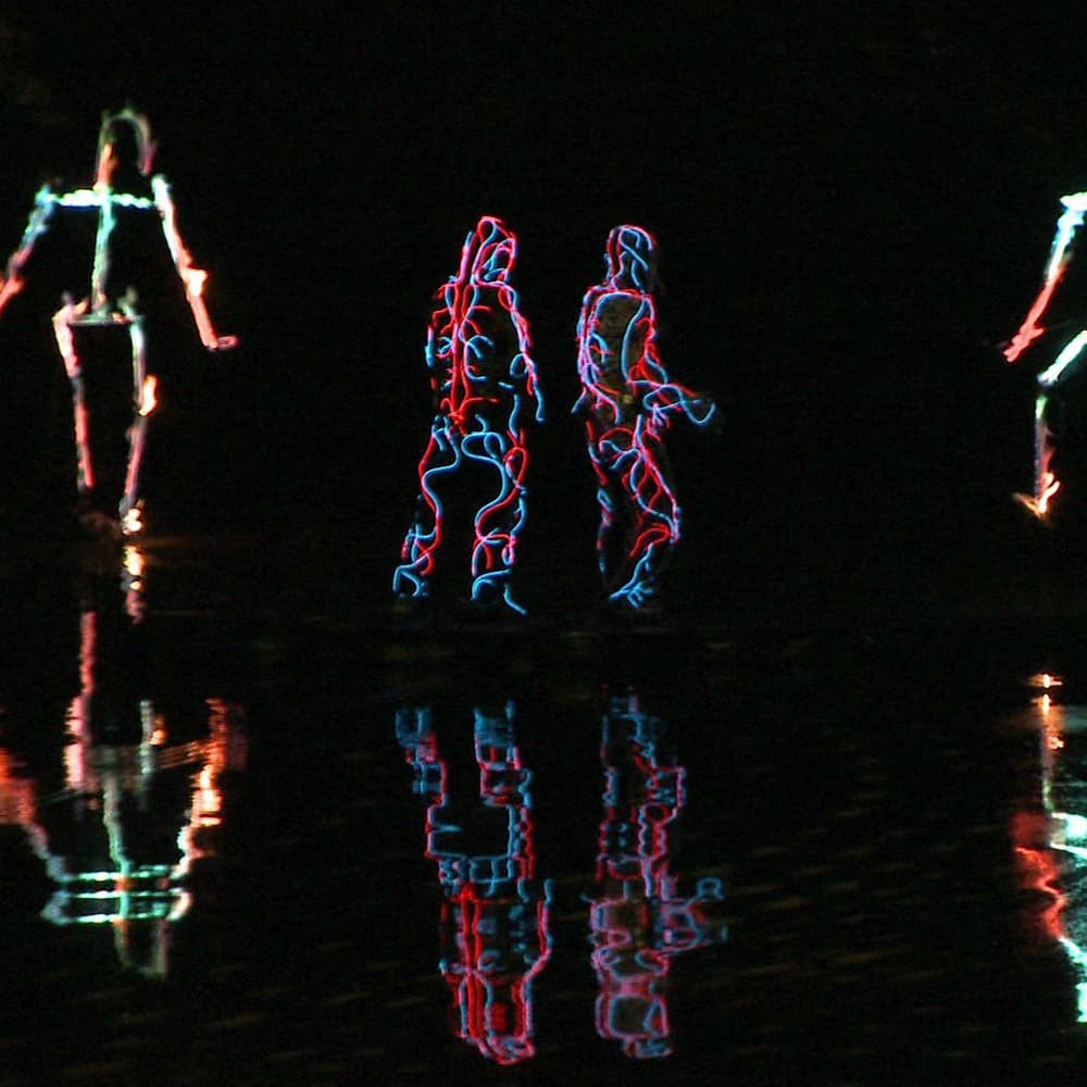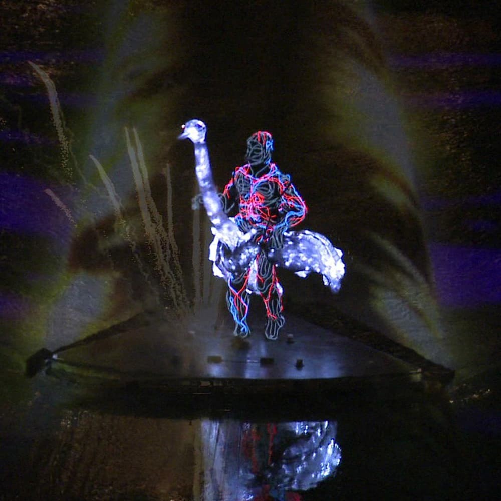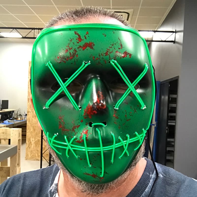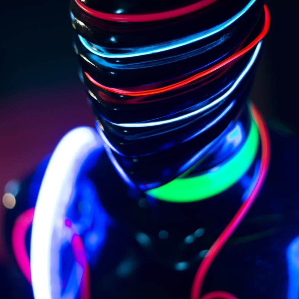 Lichtkostüm und Roboter aus elektrolumineszentem Lichtdraht